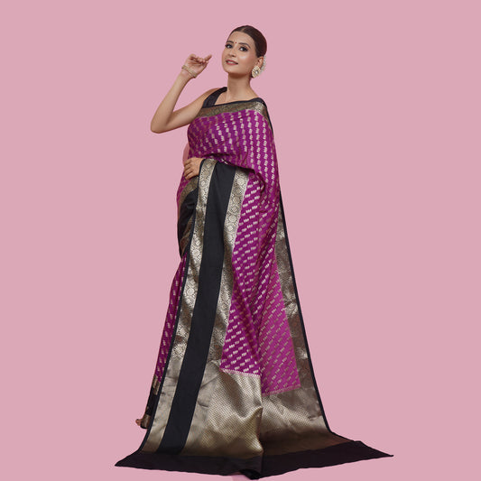 Purple Warm Silk Zari Digonal Strip Banarasi Diable Skirt Border Saree