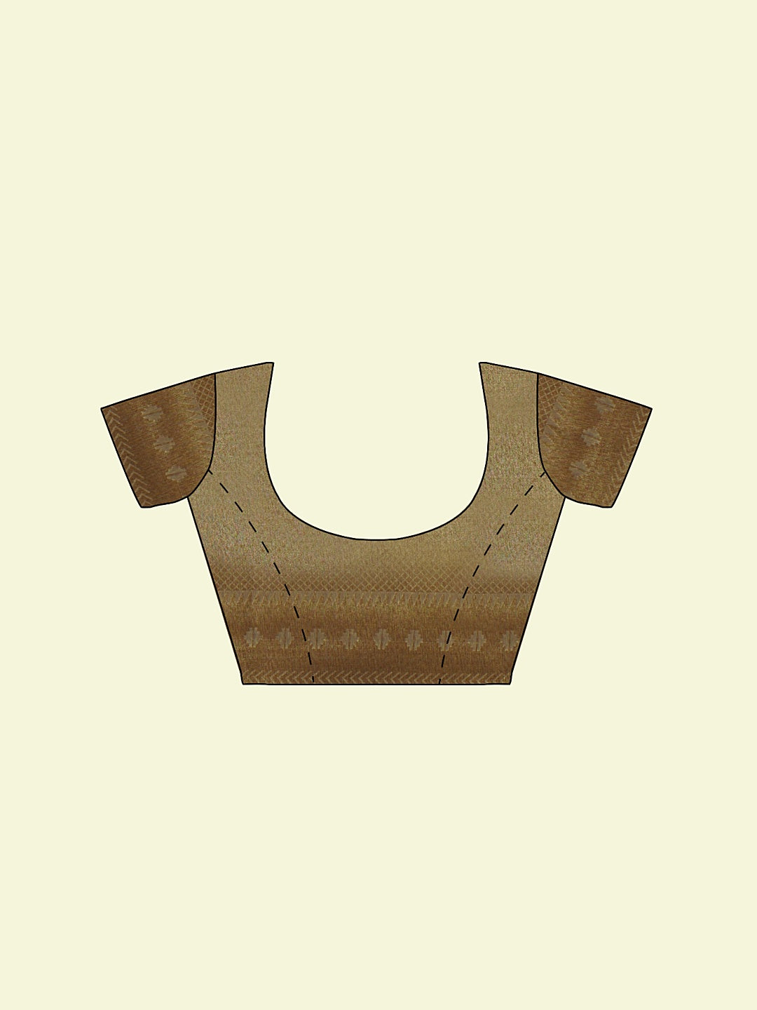Faishana offers a beautiful beige cotton geometric checked Banarasi zari border saree. This saree has a stunning geometric checked pattern on a rich cotton fabric. The beautiful borders of Banarasi zari add a touch of cultural richness, making it ideal for festivals and special occasions. Combining contemporary design with classical craftsmanship, this saree offers the perfect blend of style and comfort, making it an outstanding addition to any wardrobe