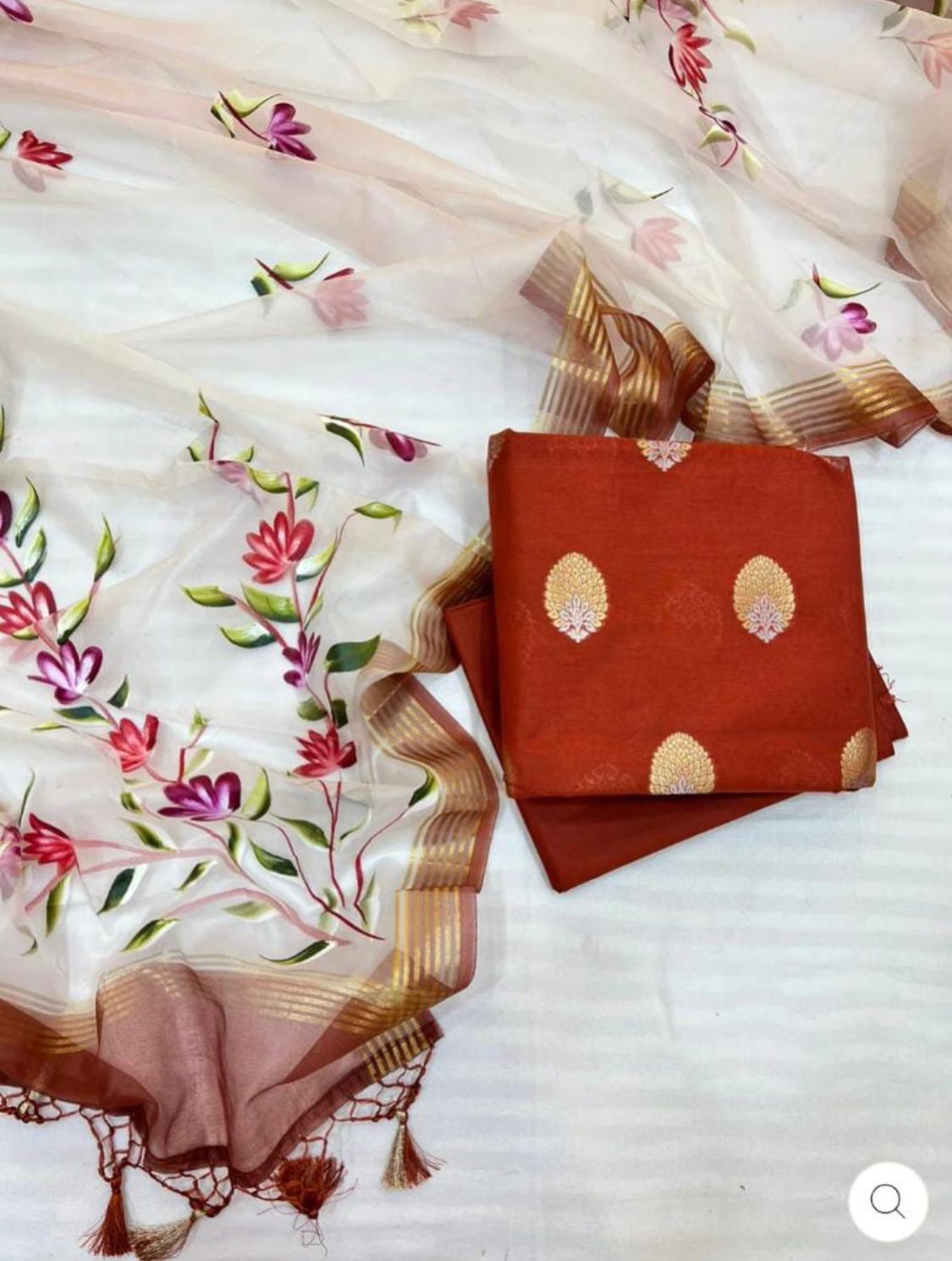 Red Pure Mercerised Lurex Weave Banarasi Suit with Handbrush Floral Organza Silk Dupatta 1200SKL_OS2