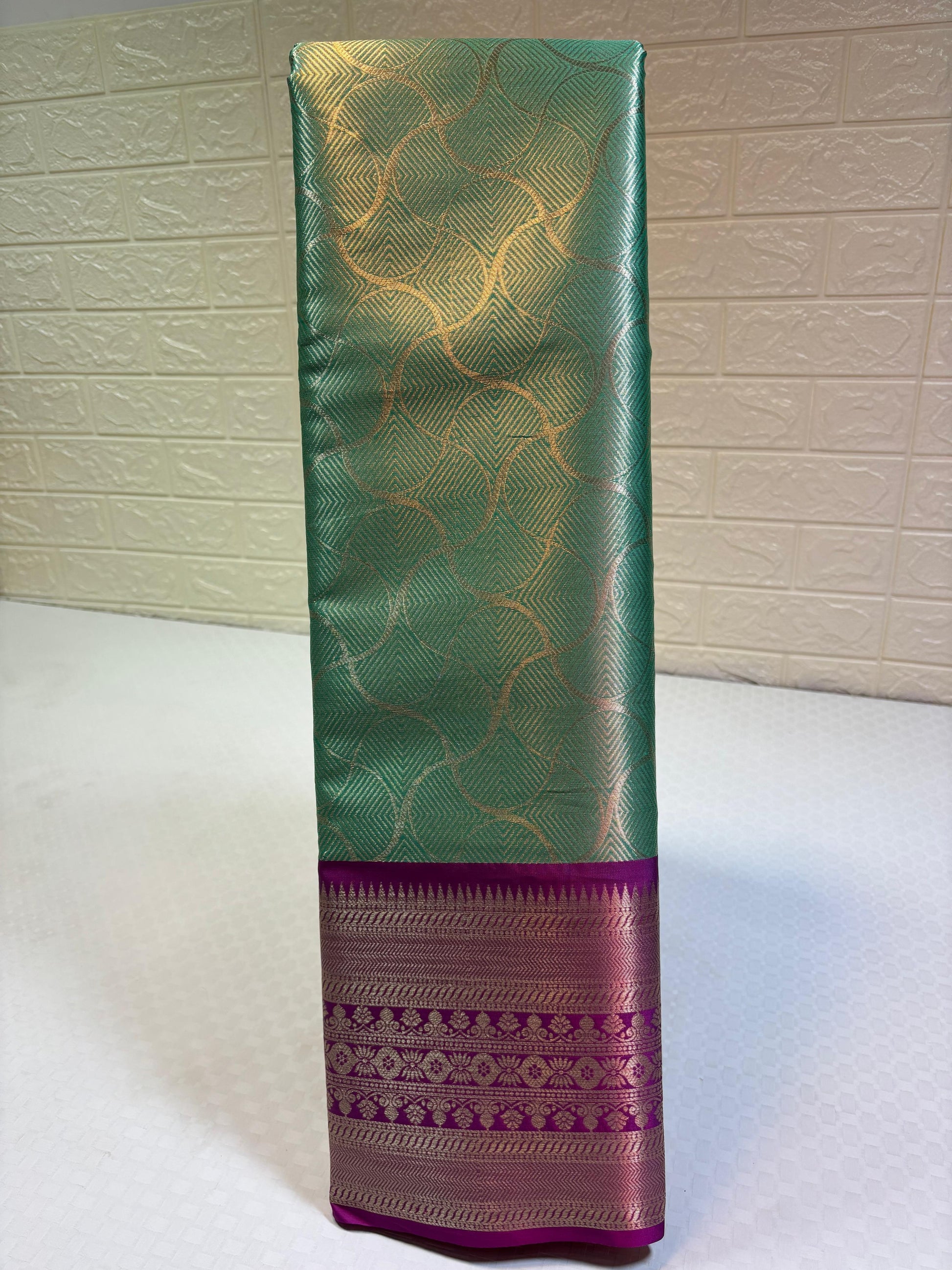 Seagreen Semi Kanchi Silk Silver Floral Jaal Contrast Pink Border Banarasi Suit MS_SK33